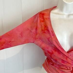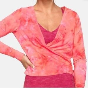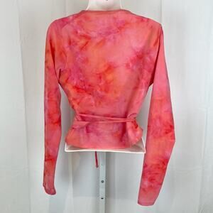Outdoor Voices Size XS Tissue Weave Wrap Top Pink Tie Dye Long Sleeve