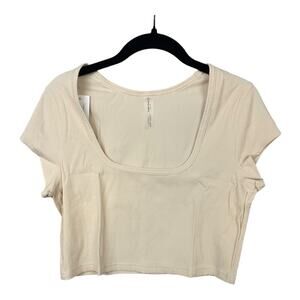 Outdoor Voices Superform Ribbed Short Sleeve Cropped Top in Burlap XL NWT