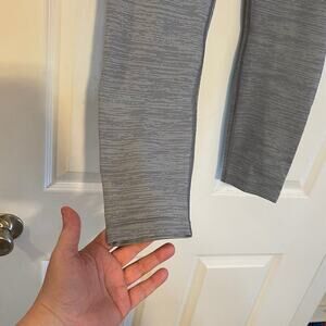 Outdoor Voices Tech Sweat 7/8 Leggings, Storm, M Elevate your activewear game with these Outdoor Voices compression leggings in a sleek gray color. Crafted from a blended fabric with a nylon material, these leggings feature a pull-on closure and skinny leg style, making them perfect for yoga and other summer activities. The leggings have a stretch feature and compression area located on the leg for added comfort,