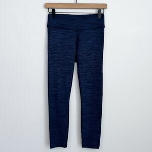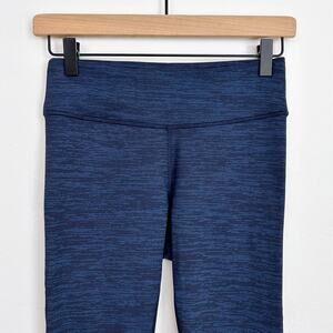 Small Outdoor Voices TechSweat leggings. Stretchy, blue spacedye fabric. Gently worn; the printed letters on the inside of the leggings have started to come off a little.