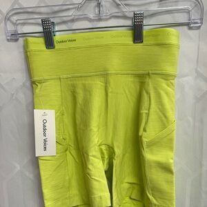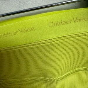 These Outdoor Voices Thrive shorts are brand new and have the original tags attached. They are 5” long and are a size XXS. The color is called margarita.