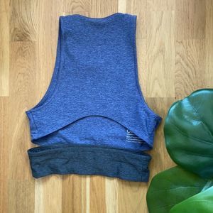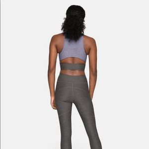 Outdoor Voices Tri-Color Slashback Yoga Crop Top XS Ballet Storm Olive Textured