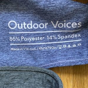 Outdoor Voices Tri-Tone Slashback Crop Top – Ballet / Storm / Olive (XS)