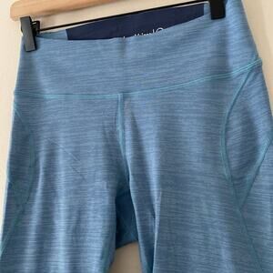 OV TechSweat 7/8 length leggings in Provincial Blue color. Lightweight and buttery-soft fabric with a flexible waistband and sleek silhouette. Excellent condition