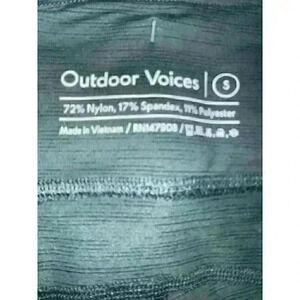 Elevate your workout wardrobe with these stylish Outdoor Voices leggings. The green and gray heathered design adds a touch of uniqueness to your fitness ensemble. These leggings are made of a blend of polyester, nylon, and spandex, making them durable and machine washable.The mid-rise, cropped style offers a comfortable fit for various activities such as yoga, running, and cross-training. The leggings also feature compression, comfort, and stretch, ensuring you can move freely and confidently during your workouts. The Outdoor Voices logo adds a touch of branding to these high-quality leggings.