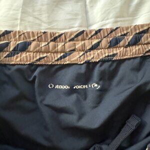 Outdoor Voices lined shorts in tan and navy. Some wear on inside label from washing.