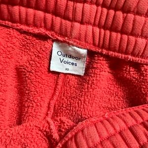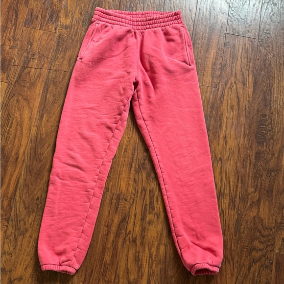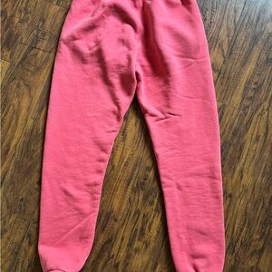 Front pockets, cozy, gently used, warm, elastic waist and ankles, size xs but could fit a small maybe even medium? I’m 5’4, 115 lbs and they are plenty comfortable. Coral/Salmon color.