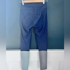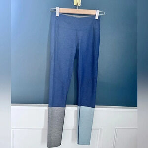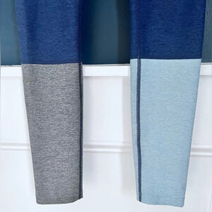outdoor voices leggings, OV warmup leggings, colorblock leggings, dipped leggings, XS outdoor voices, blue gray leggings, athleisure activewear