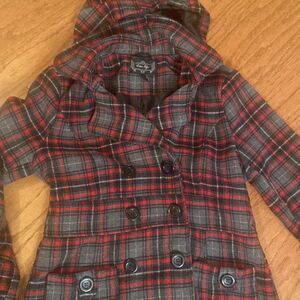 Outer Edge size medium plaid jacket, cute buttons in the front pockets