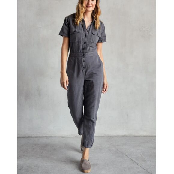 Outer Known Women's Size S Storm Sea Jumpsuit Button Front EUC