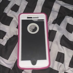 It’s pink and white in good condition.