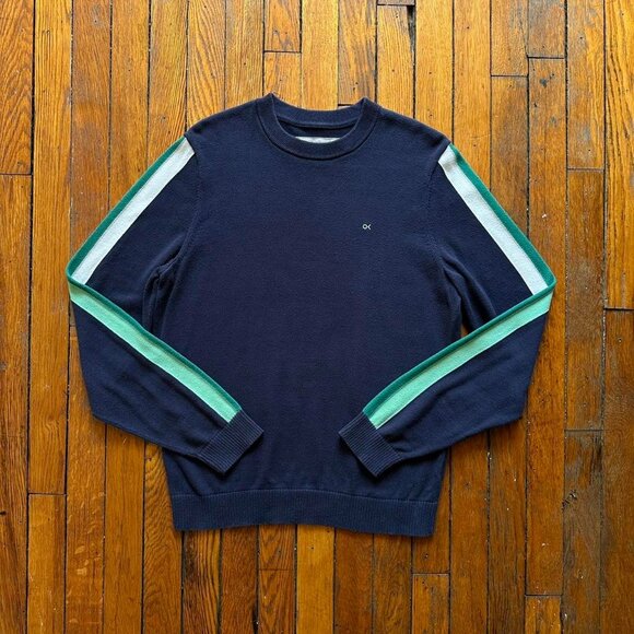 OuterKnown Organic Cotton Crew Neck Knit Sweater Men Small Blue White Green Stripe