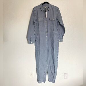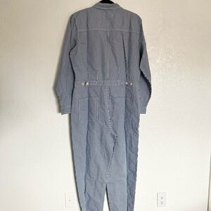 OuterKnown S.E.A Suit Organic Cotton Linen Blend Striped Blue Coverall S…