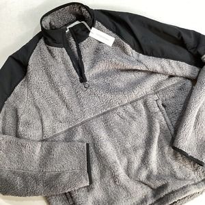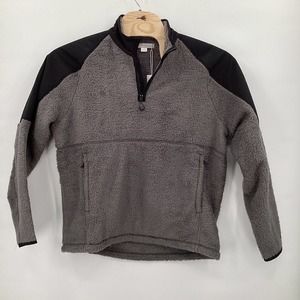 Outerknown 1/4 Zip Sweater Mens L Black/Grey Soft Sherpa Fleece Pullover Pockets