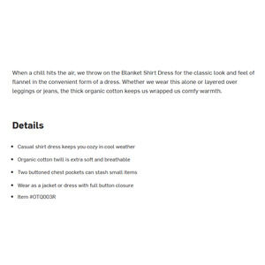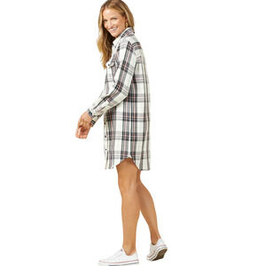 Outerknown BLANKET Cotton Flannel Shirt Dress in Blue Box Plaid Size XS NWT $168