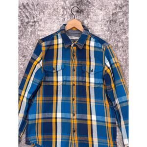 Outerknown Blanket Shirt Medium Mens Blue & Yellow Plaid Heavyweight Flannel
