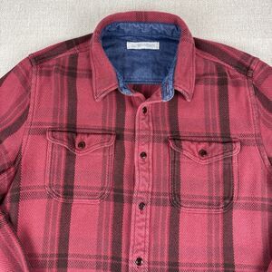 Outerknown Blanket Shirt Men's Red Black Plaid Button Up Heavy Flannel Large