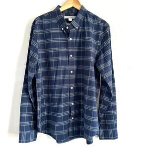Outerknown Check Print Button Front Long Sleeve Shirt Blue‎ Men's Size Large