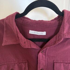 Outerknown Dillon Two Pocket Flannel Shirt Long Sleeve Red Maroon Large Blanket Shirt