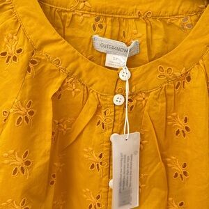 Outerknown Golden Yellow Poet Blouse Button Front Waist Tie Eyelet Small