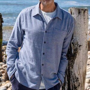 Outerknown Men's Blue Organic Cotton Button Down Collared Long Sleeve Shirt - Size L Large