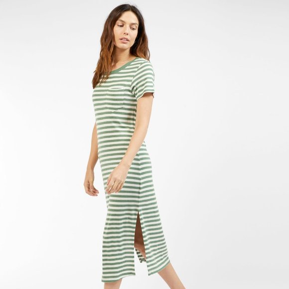Outerknown Neptune Tee Dress in Green Grass / Salt Stripe