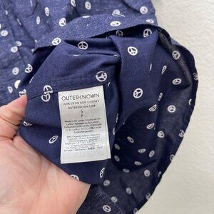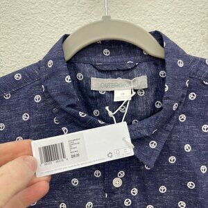 Outerknown Peace Sign Print Organic Short Sleeve Button Up Shirt Mens Small NEW