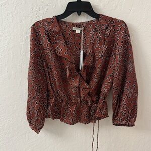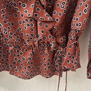 Outerknown Rhiannon cinnamon Brown floral wrap top organic cotton blend Small