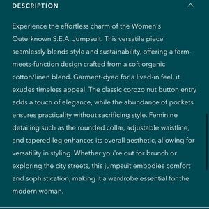 Outerknown SEA suit bright utility jumpsuit long sleeve linen blend Nwt