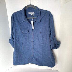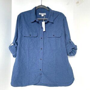 Outerknown Scout Flannel Shirt Womens Large Blue Organic Cotton Rolltab