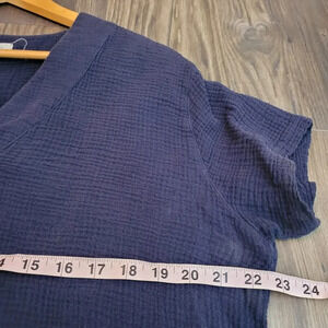 Outerknown Women's Blouse Top M Blue Gauzy Organic Cotton Short Sleeves V-Neck