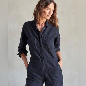 Outerknown pitch black long sleeve zip front station jumpsuit size small new