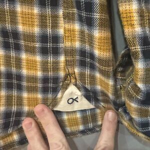 Outerknown yellow and blue plaid organic cotton flannel unisex men’s size S