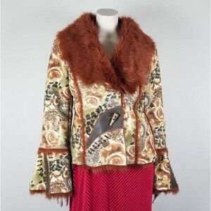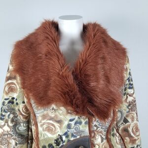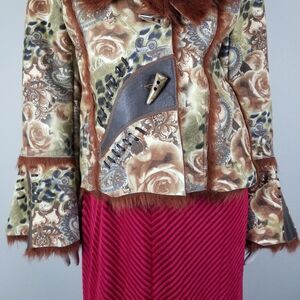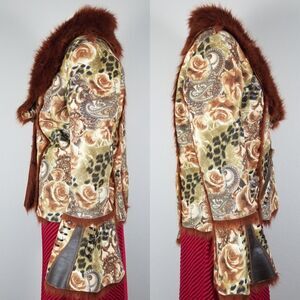 Outerwear By Lisa Y2K 90s Floral Faux Suede/Leather/Fur Bohemian Coat Size Small