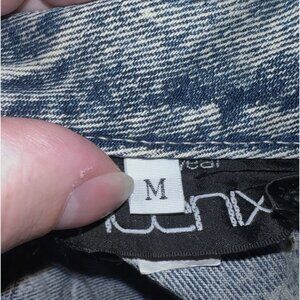 The Phoenix Vintage Acid Washed Distressed Fringe Denim Jean Jacket is a stylish and unique piece for women who appreciate vintage fashion. Made from denim with a distinctive acid wash and fringe accents, this jacket exudes a trendy yet retro vibe. The regular fit size M jacket in a classic blue color make it a versatile staple for any wardrobe, perfect for adding a touch of edgy style to any outfit.