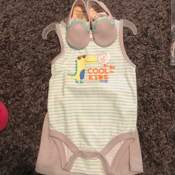 NWT baby boy outfit. Onesie, shorts, and soft bottom shoes.