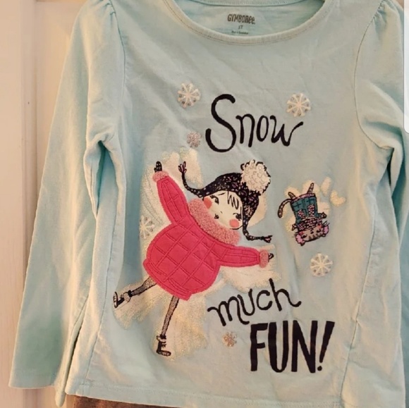 Long sleeve t shirt from gymboree is size 5t. Fleece lined leggings from carters are size 4/5.