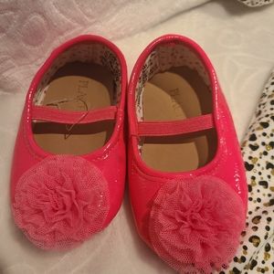 Like new condition long sleeve romper and pink flower shoes size 9 months