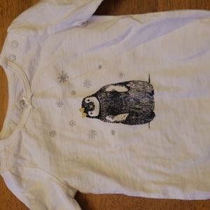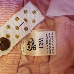 3 piece outfit. Penguin onesie, pink corduroy pants and suspenders.