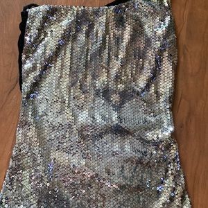 Sequin one shoulder tiger top size XS. Back of top is velvet. Faux leather pants are a child’s L EUC