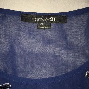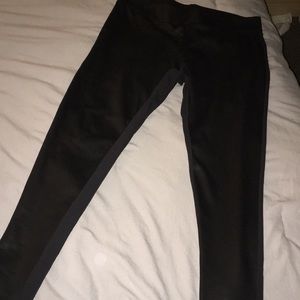 Excellent condition. Leggings have leather like on the front and are from Matty M. Blouse is from Forever 21 and has super cute design on the front with sequins. Leggings are stretchy and blouse is light and comfortable. Leggings have minor tear on inner left ankle but you cannot tell-please see pictures. No trades at this time but open to offers.