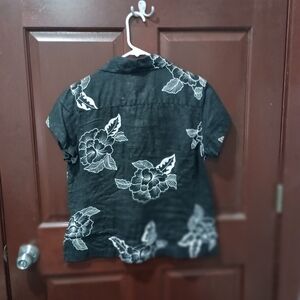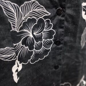 Outfit JPR 100% linen black white floral button up shirt size M. missing top button