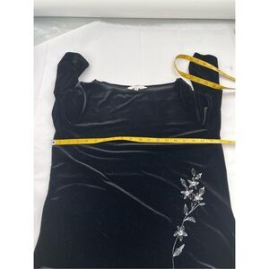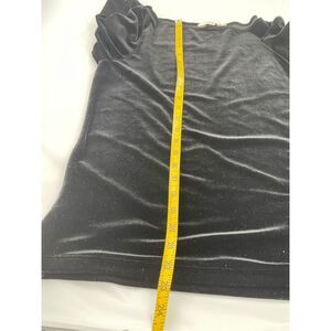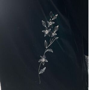 Outfit JPR size medium embroidered black velvet top.This is a standard size medium tunic top. It has 3/4” sleeves and side slits at bottom. White embroidered flower on bottom front. No flaws. Very stretchy. Sleeve length l8”.