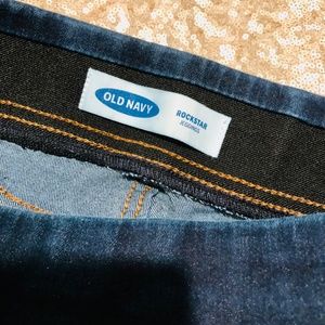 Gently used light sweater with crochet embellishment and Old Navy skinny jeans.