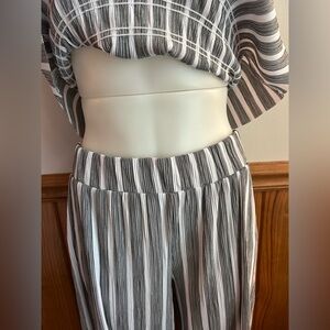 Outfit, wide leg pants with matching tank, elastic waist, cruise wear, very flattering and comfortable, dressy casual, white, black, grey