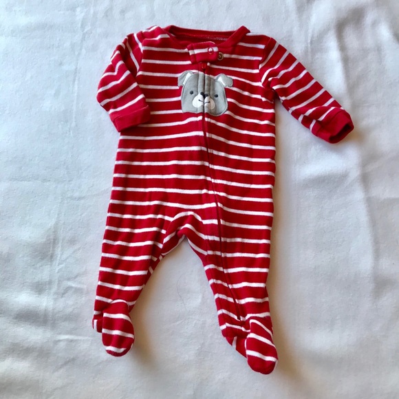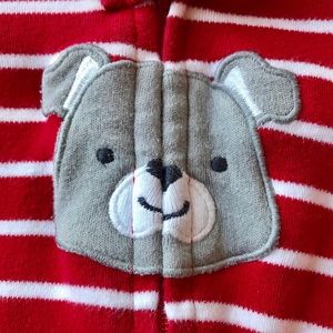Red and white striped puppy onesies