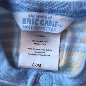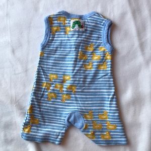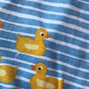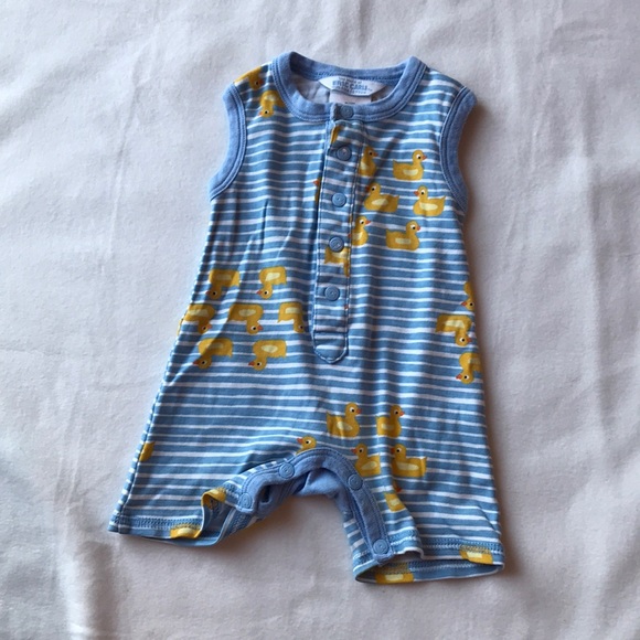 Blue and white stripped with ducks onesie.