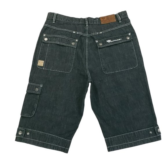Outkast Clothing Co Denim Jean Cargo Shorts Mens Measure 38 Black