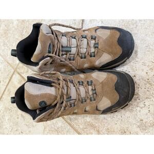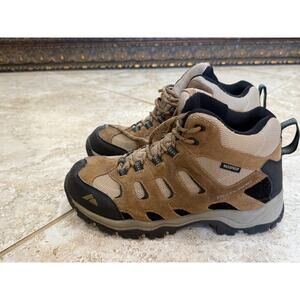 Durable, rugged boots with strong traction soles, perfect for hiking, hunting, or outdoor work. Tan and black design with breathable mesh panels. Gently worn, great condition.