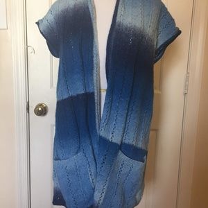 Outlander Multi-Blue Dip Dyed Short Sleeve Sweater Vest w/ Pockets Size: Small P2P: 20" Length: 29" shoulder to hem 100% acrylic Only worn once.